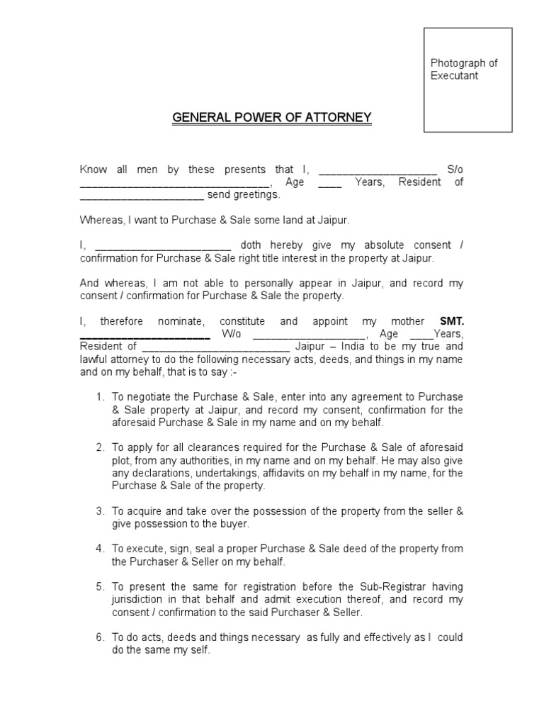 A general power of attorney allows an individual (the principal) to select an individual (the agent) to handle their financial affairs only. Unlike durable power of attorney, the general does not allow the agent to be able to make decisions on the principal if he or she is not mentally capable (also known. Requirements for executing general powers of attorney may vary from state to state to country to country and if you are in doubt about how to execute this document you should consult a lawyer. Various power of attorney form have you designated your power of attorney to your agent? General power of attorney means that attorney may perform more than one job on behalf of the principal if power of attorney is for any immovable property, sale or for mortgage then it should be registered necessary requirements of power of attorney: